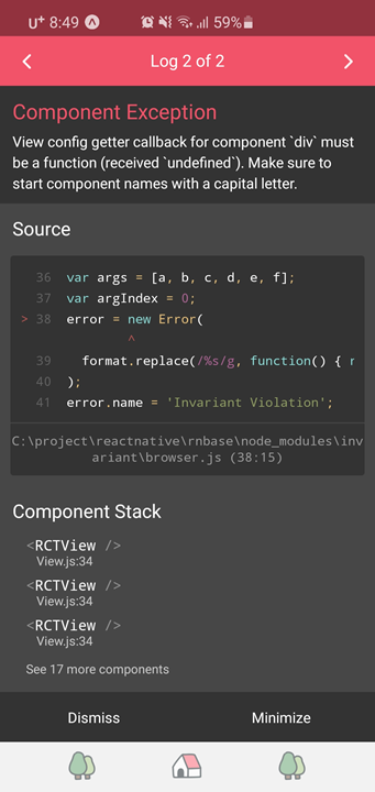 사실 자신이 조심해서 웹 컴포넌트들을 배제하고 RN 개발을 한다면 나오지 않을 에러지만