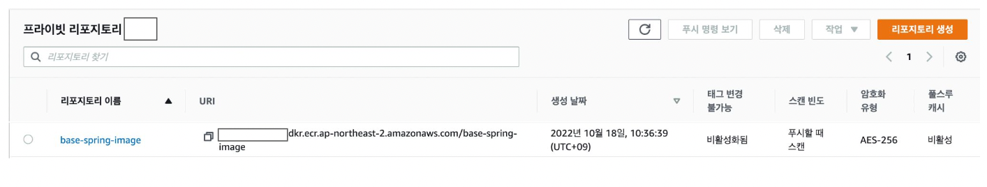 위 화면처럼 ECR에 base-spring-image가 올라왔다면