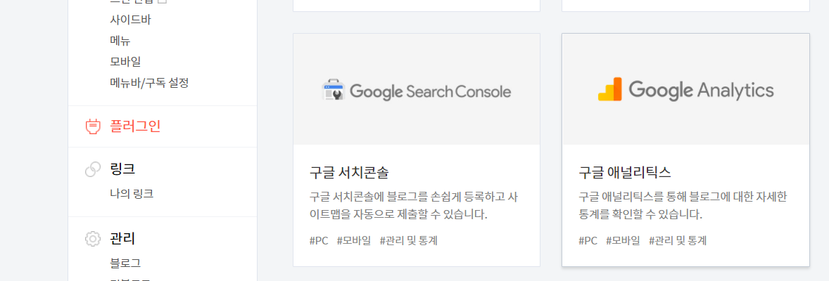 티스토리 블로그의 경우 GA 플러그인을 제공하고 있다.