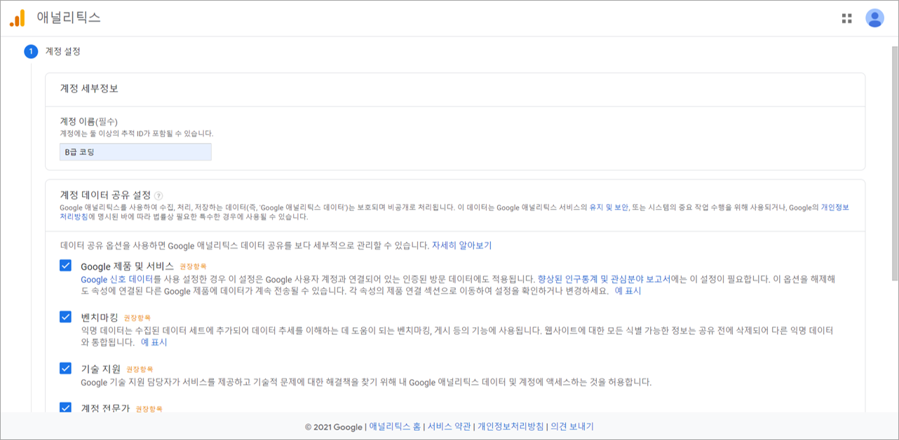 여기서 꼭 유니버설 애널리틱스 속성 만들기를 On으로 해주는 것이 좋다.