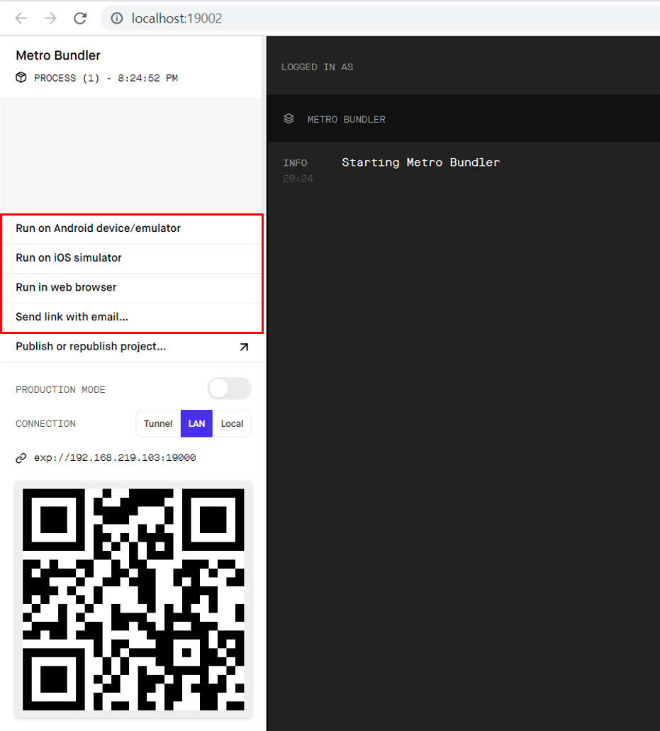 그리고 아래 QR을 Expo앱에서 찍으면 핸드폰에서 바로 디버깅이 가능하다.